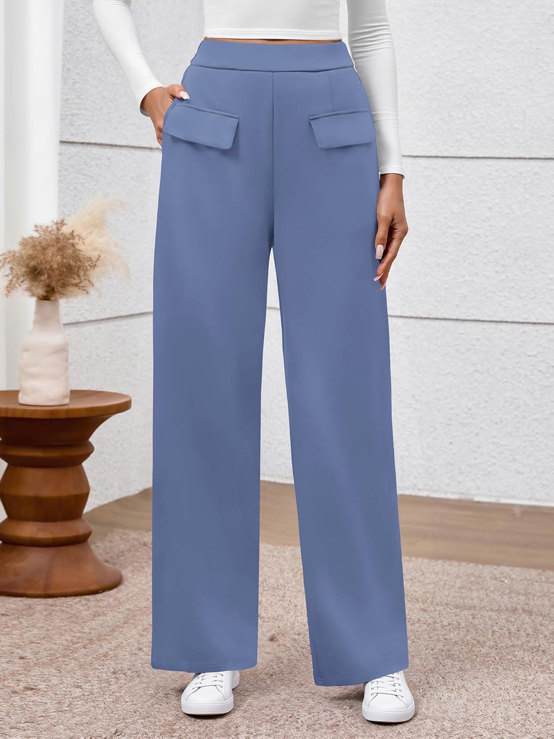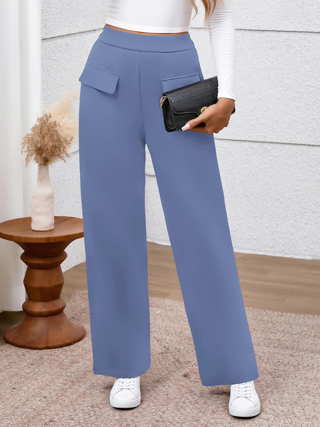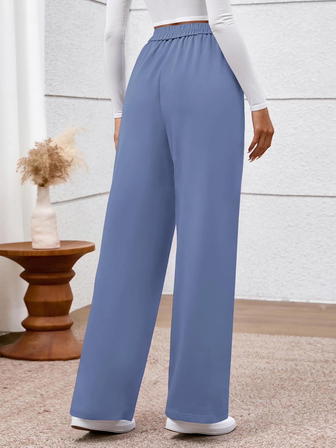 BTFBM Women’s Pants 2025 Fall Elastic High Waisted Trousers Stretchy Comfy Lounge Palazzo Pant Wide Leg Sweatpants(Blue)