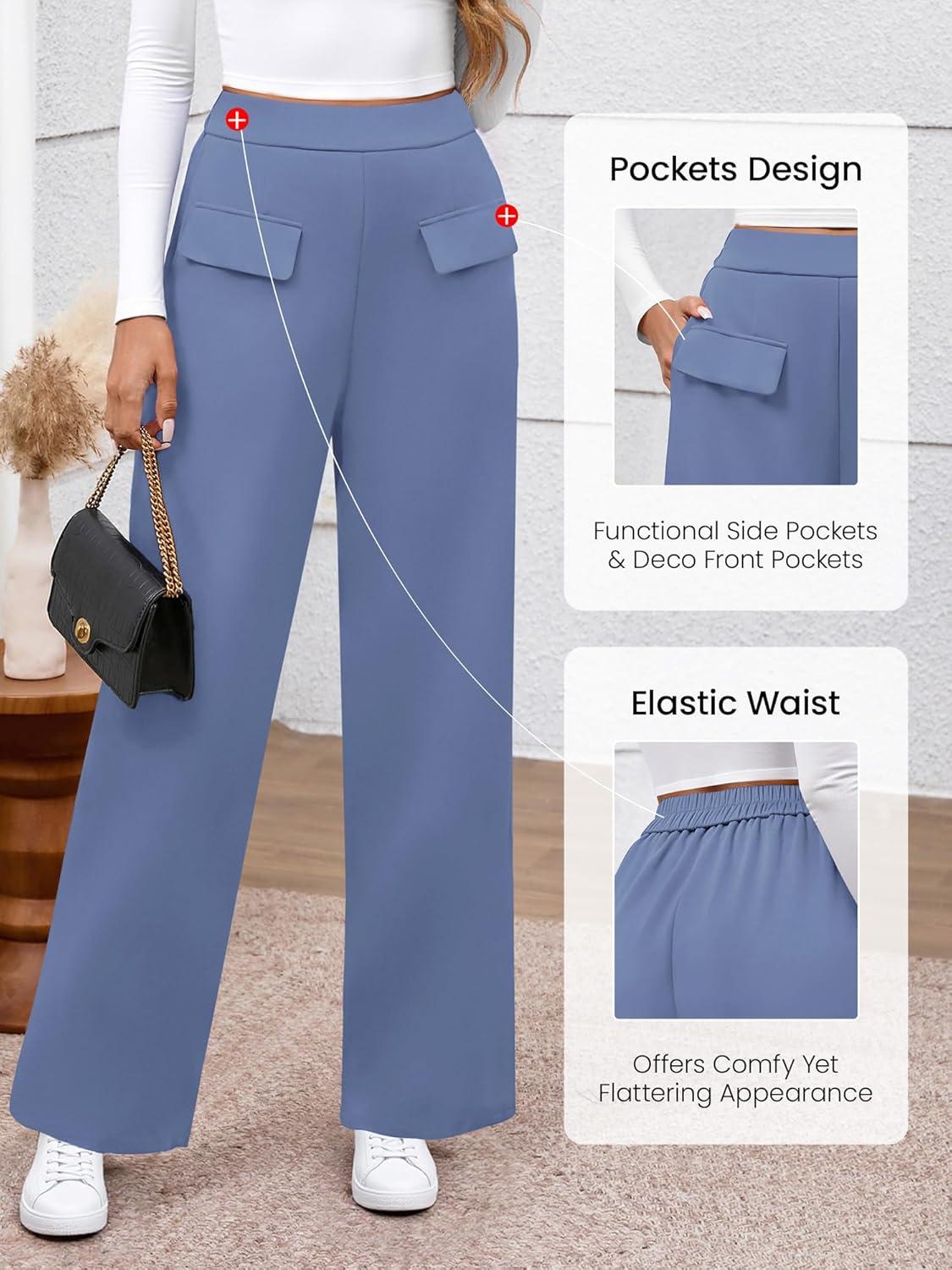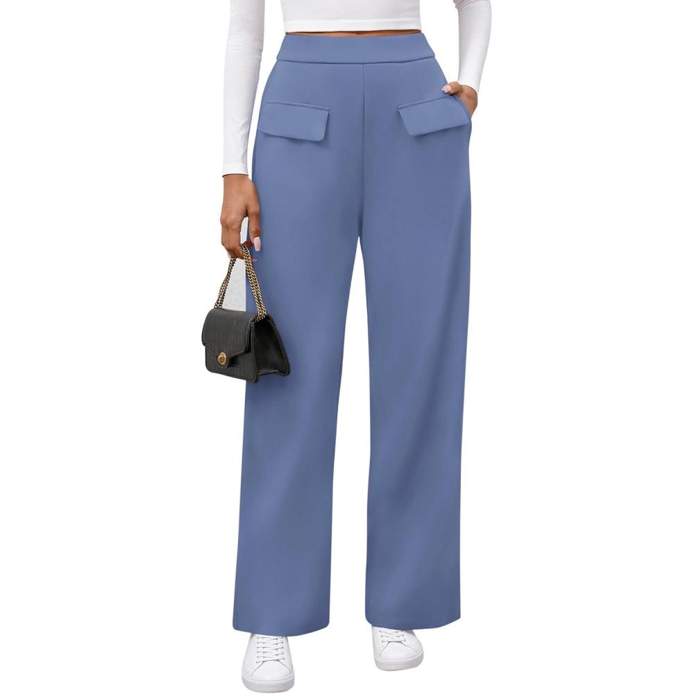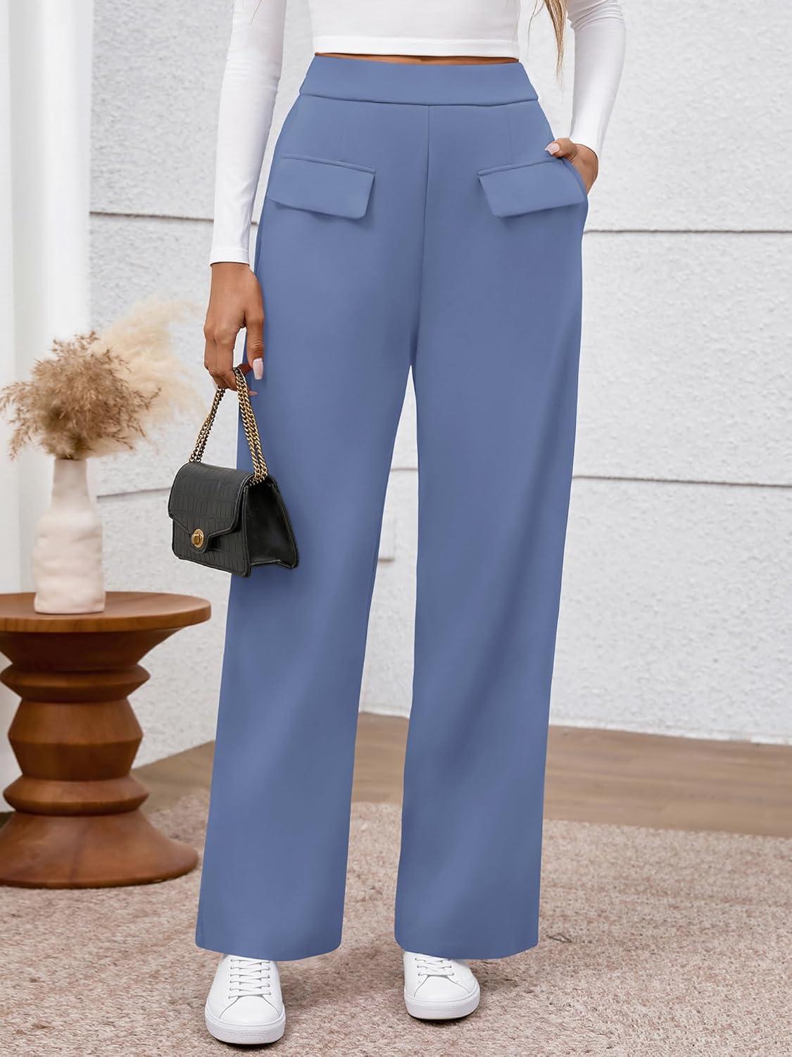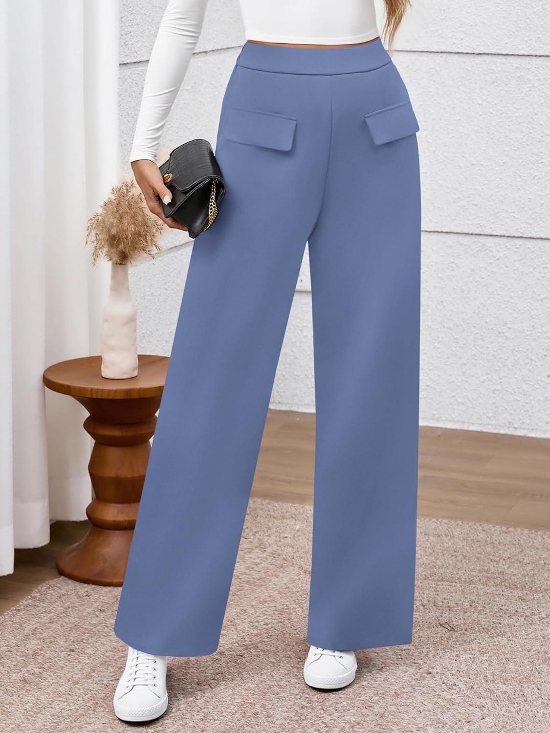 BTFBM Women’s Pants 2025 Fall Elastic High Waisted Trousers Stretchy Comfy Lounge Palazzo Pant Wide Leg Sweatpants(Blue)