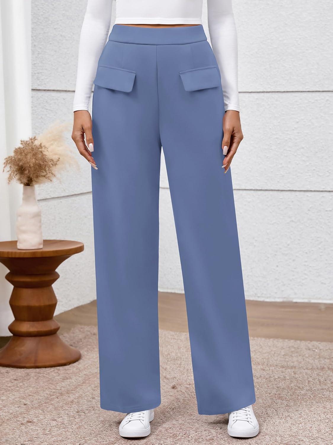 BTFBM Women's Pants 2025 Fall Elastic High Waisted Trousers Stretchy Comfy Lounge Palazzo Pant Wide Leg Sweatpants(Blue)