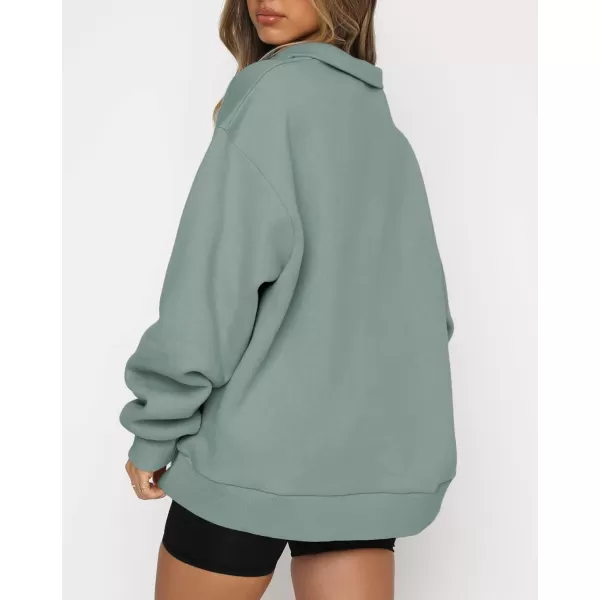 BTFBM Women's Quarter Zip Long Sleeve Sweatshirt Oversized Casual 2023 Fall Winter Fashion Hoodies Pullover Y2K Clothes(Solid Grey Green)