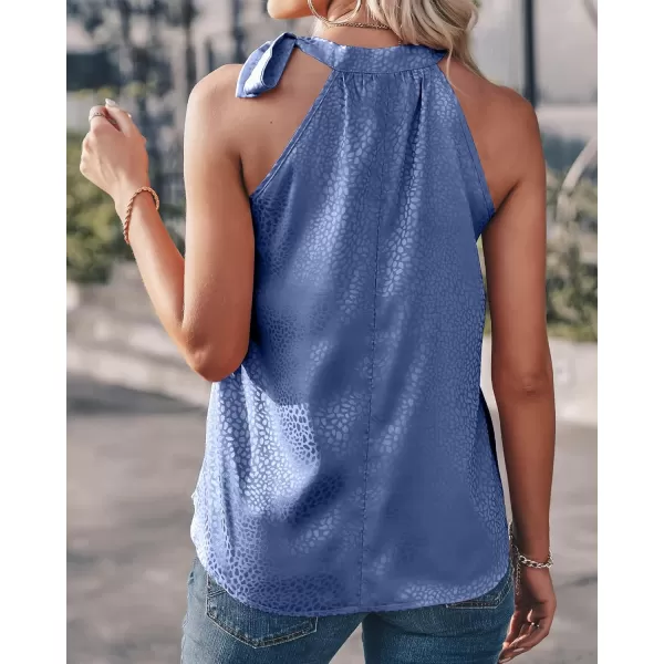 imageBTFBM Womens Sleeveless Tie Mock Neck Summer Tops Loose Soft Casual Side Bow Halter Tank Top Blouse Shirts Leopard PrintHalter Dark Blue