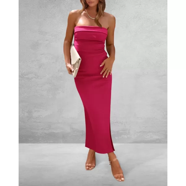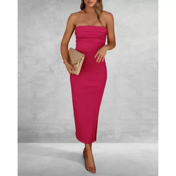 Get the BTFBM Women’s Strapless Tube Dress 2024 Summer Knit Backless Slit Formal Bodycon Wedding Cocktail Party Maxi Dresses(Solid Rose Red) you want at a price you can afford with our markdown sale.