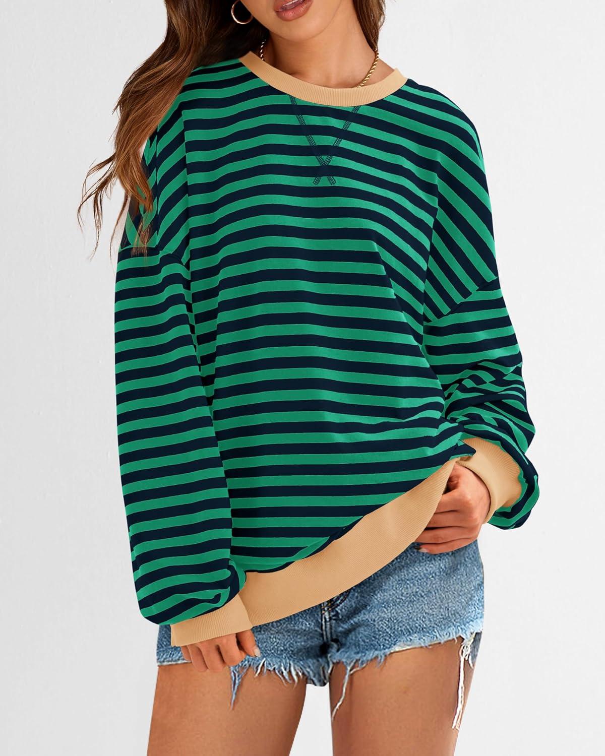 Get the BTFBM Womens Striped Pullover Tops Fall Clothes 2025 Long Sleeve Shirts Trendy Soft Crew Neck Loose Y2K Sweatshirts(Green Navy) you’ve been eyeing at a discounted price during our seasonal sale event.