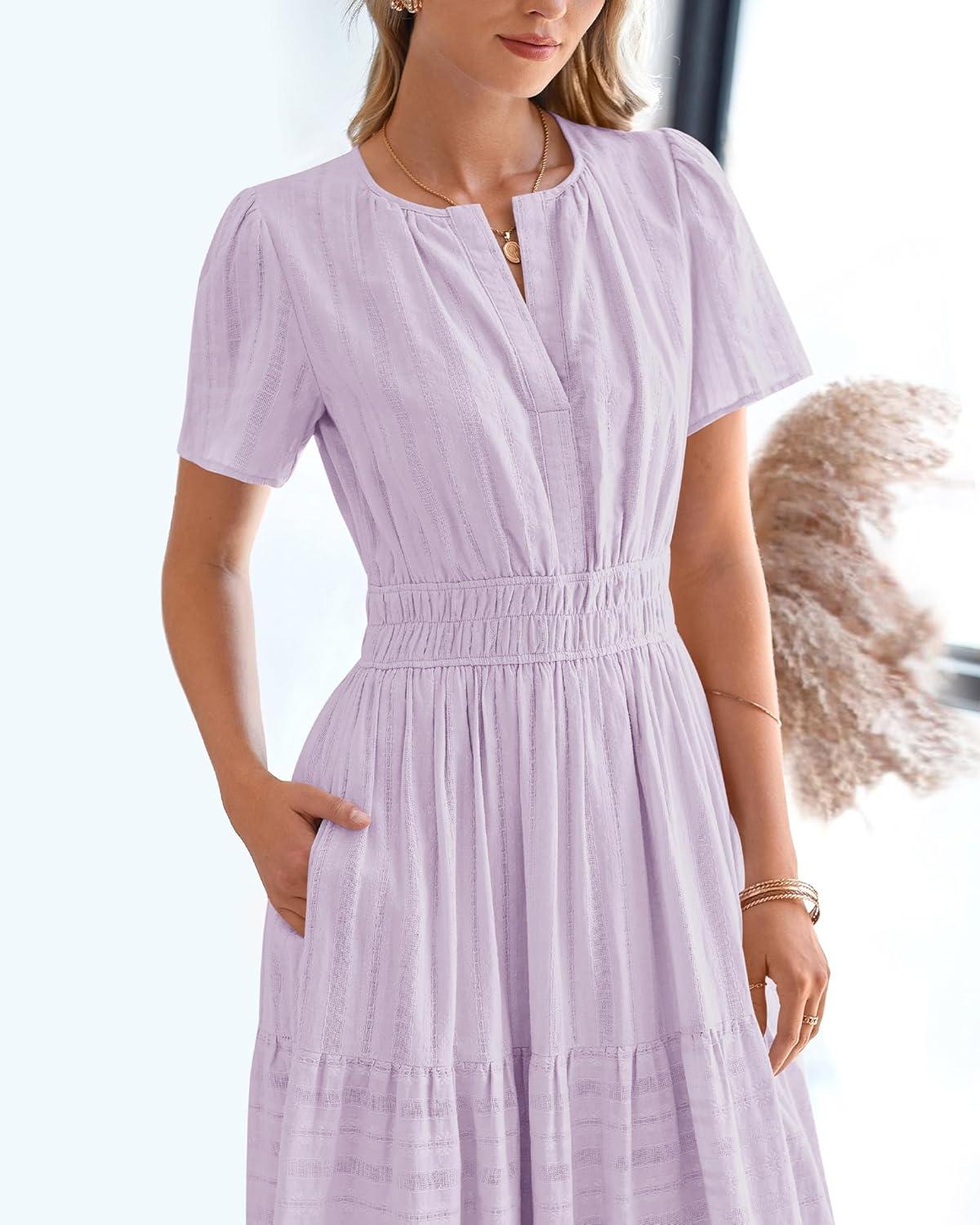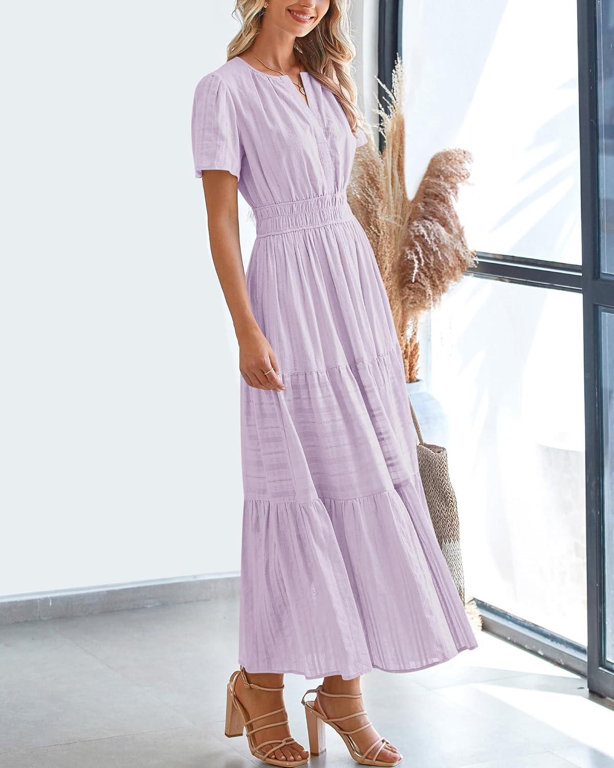Our clearance event features the best deals on BTFBM Womens Summer 2025 Casual Midi Maxi Dresses Lightweight Short Sleeve V Neck Elastic Waist Boho Beach Dress Pockets(Light Pink Purple) and accessories. Shop now!