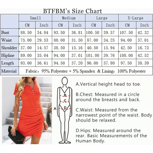 BTFBM Women’s Summer Casual V Neck Short Sleeve Ruched Bodycon T Shirt Short Mini Dresses with Buttons(Orange Red)
