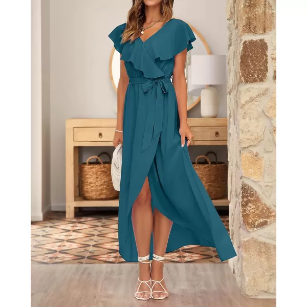 FEATURES: Summer Dresses For Women 2023 / Wedding Guest Dresses For Women / Maxi Dress For Women / Ruffle Wrap Dress / Deep V Neck With Safety Snap / Ruffle Layer / Elastic Empire Waist With Belt / With Lining / Slit Hem / Classic Solid Color / Chiffon Material / Long Summer Dresses For Women / Casual Dress