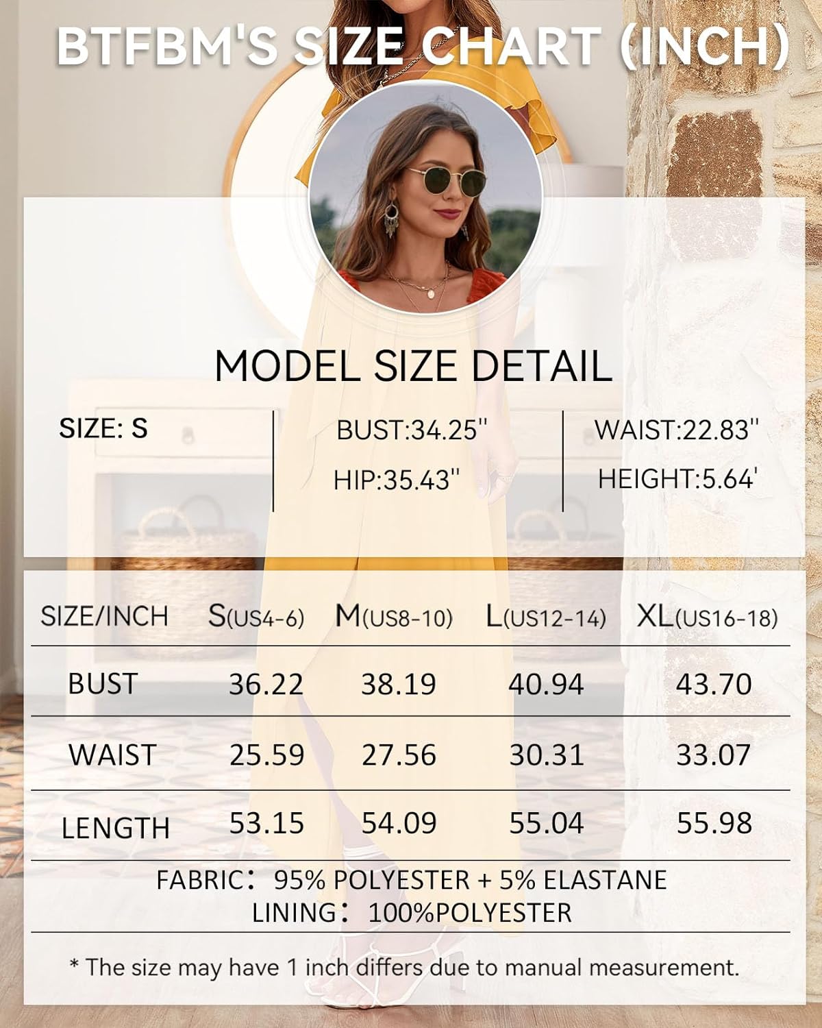 Be the first to review “BTFBM Women’s Summer Chiffon Maxi Dresses Deep V Neck Ruffle Short Sleeve Beach Party Cocktail Flowy Wrap Dress with Belt(Solid Turmeric)”