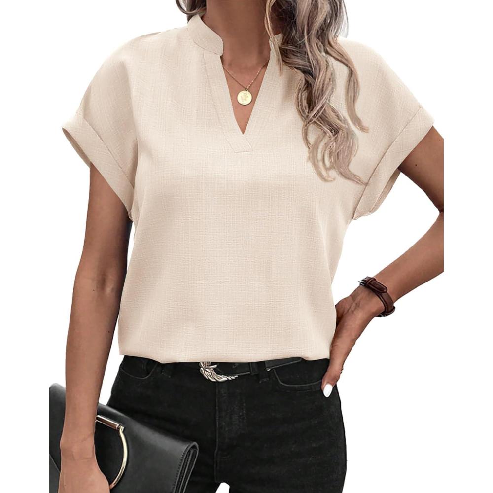 Discover the latest BTFBM Womens Summer Tops 2025 V Neck Short Sleeve Tshirt Loose Flowy Tunics Solid Color Dressy Casual Blouse Shirts(Beige) from and take advantage of our limited-time introductory offer.