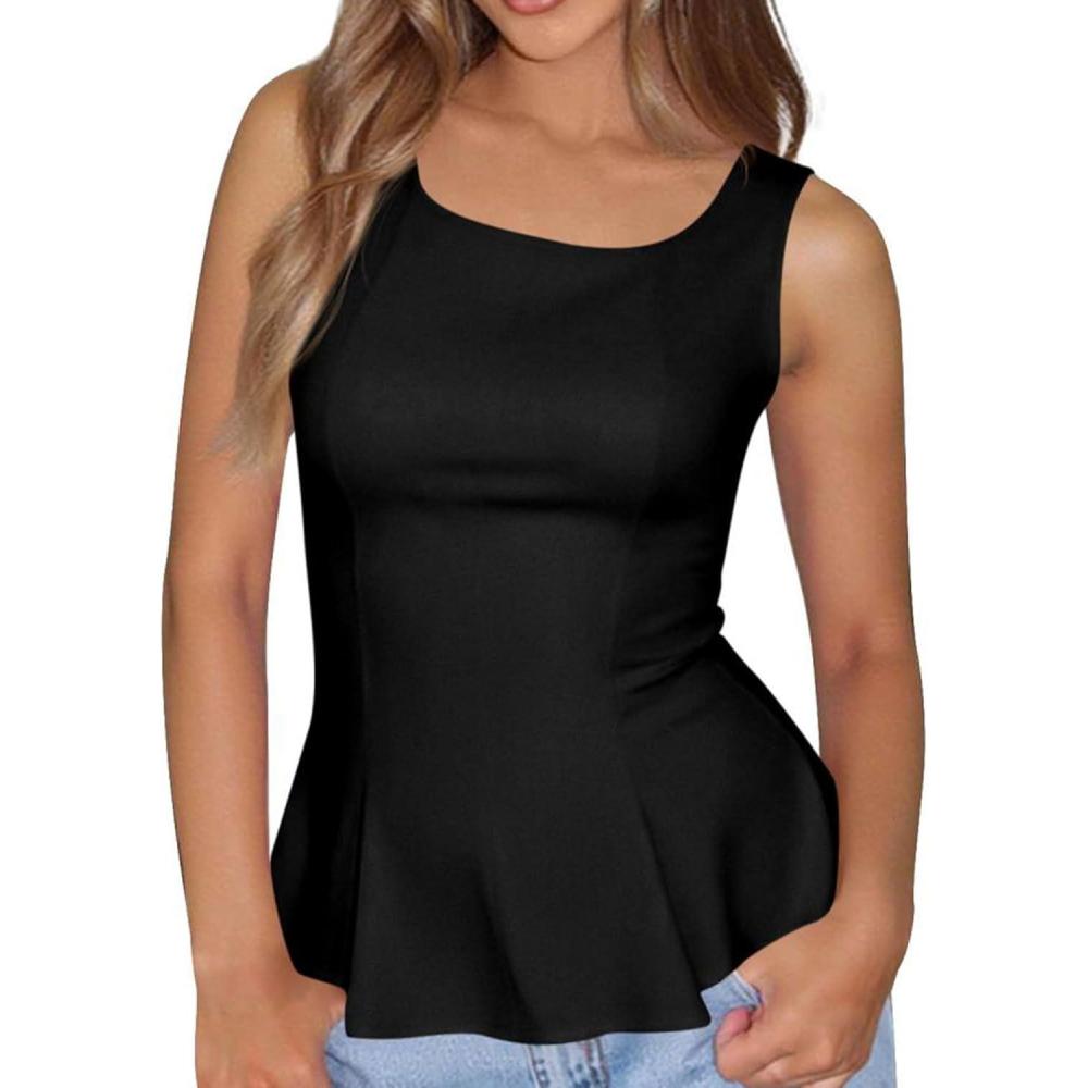 BTFBM Womens Summer Tops 2026 Business Casual Outfits Crew Neck Sleeveless Shirts Slim Fit Peplum Tank Top(Black)