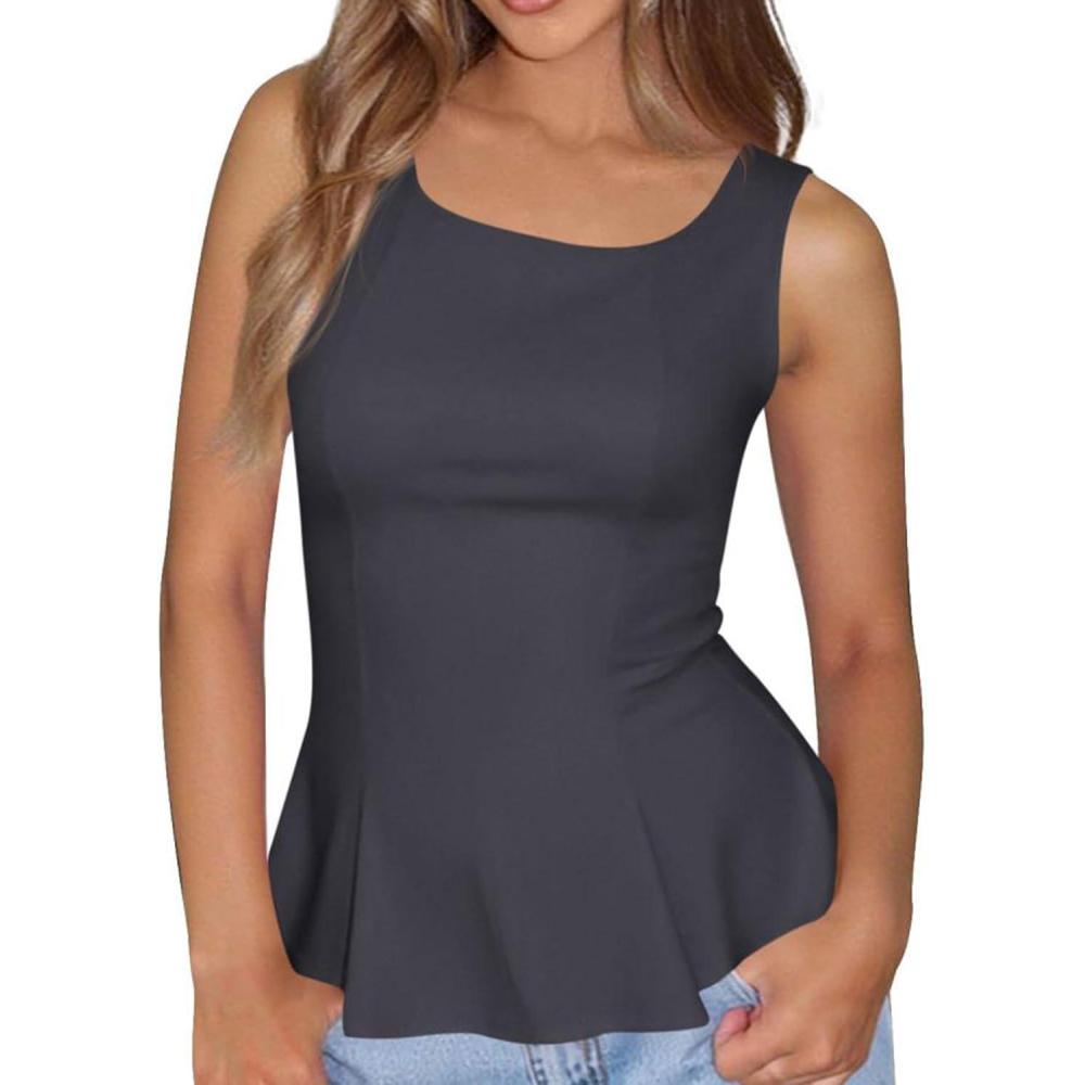 BTFBM Womens Summer Tops 2026 Business Casual Outfits Crew Neck Sleeveless Shirts Slim Fit Peplum Tank Top(Dark Grey)