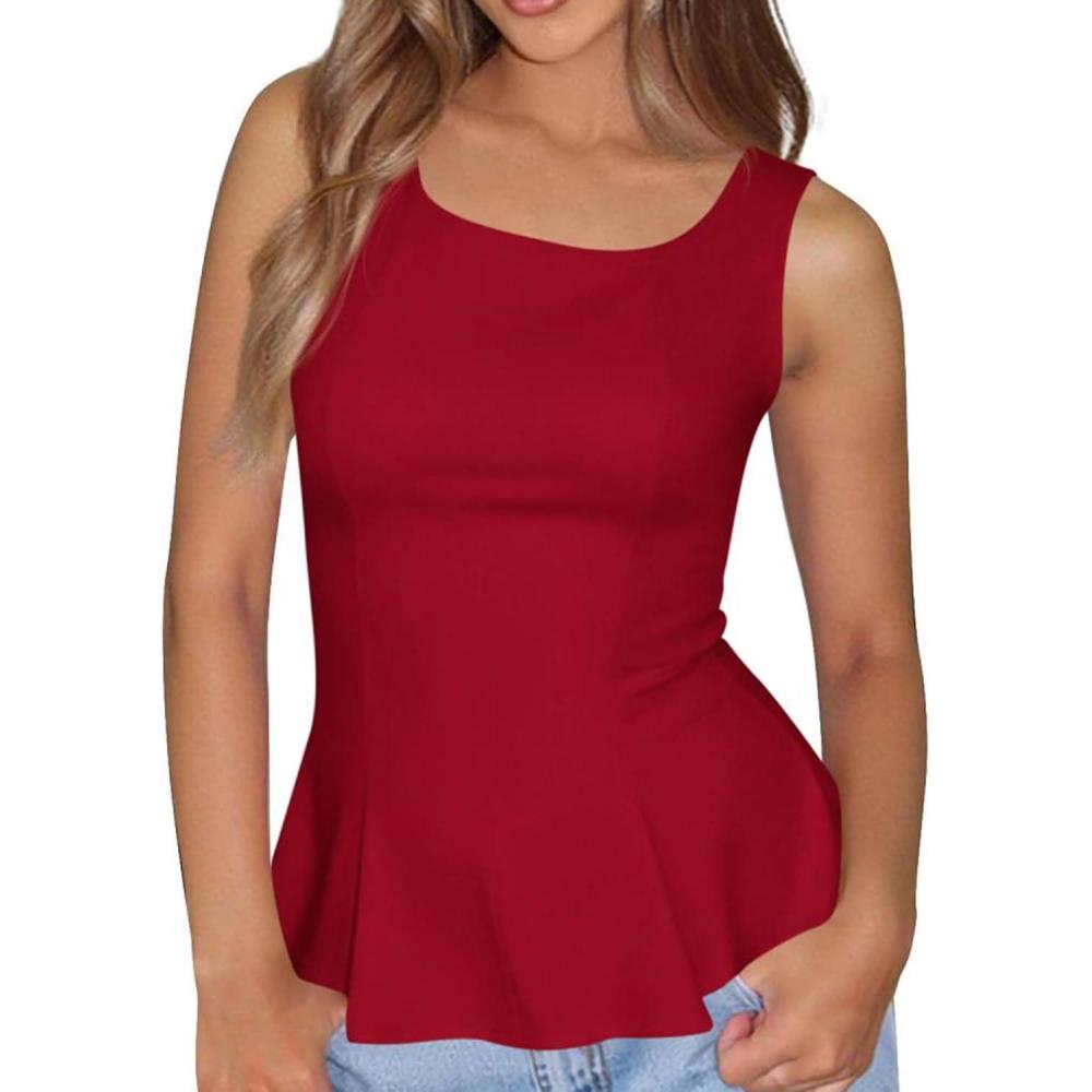 BTFBM Womens Summer Tops 2026 Business Casual Outfits Crew Neck Sleeveless Shirts Slim Fit Peplum Tank Top(Red)