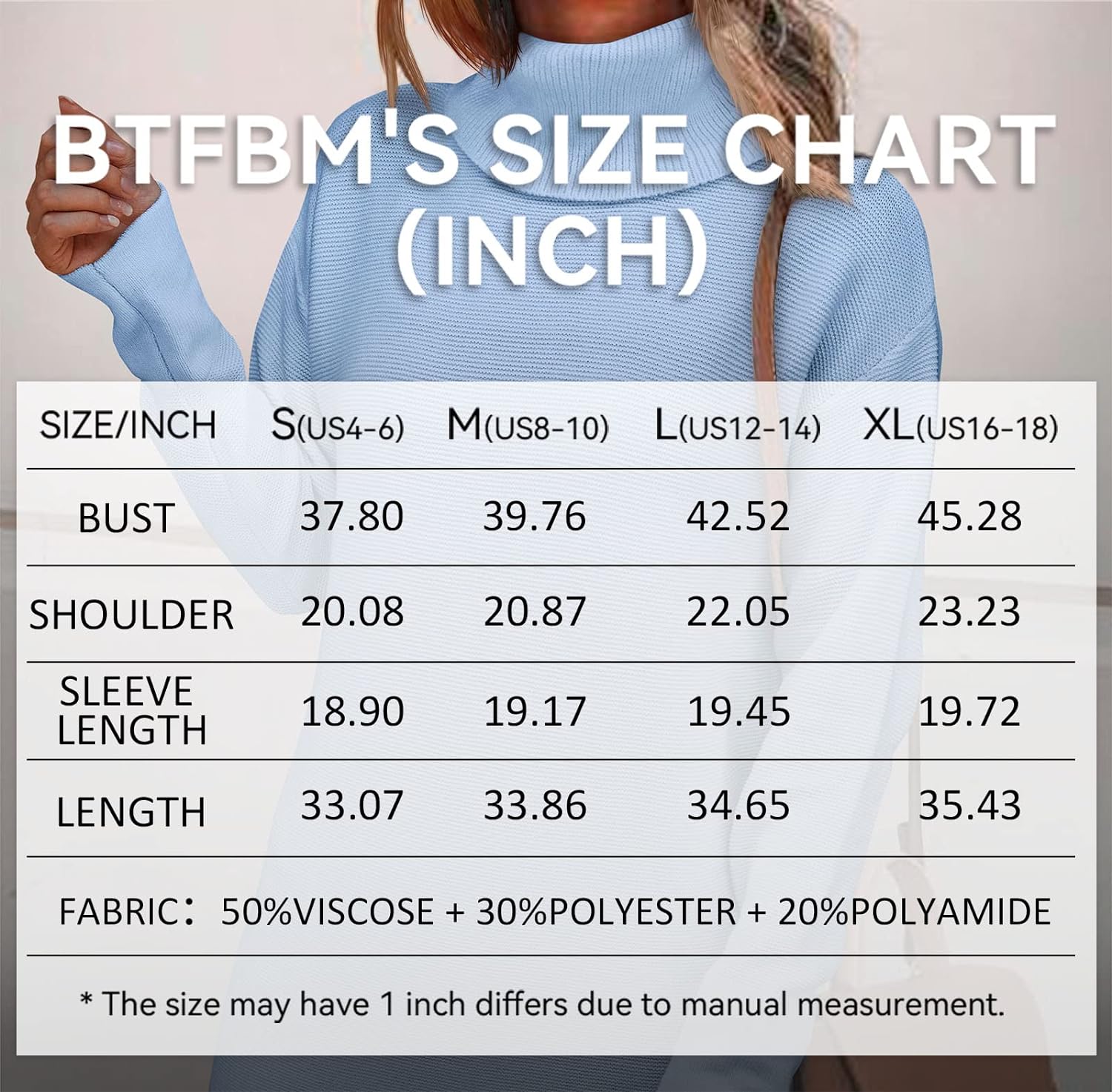 Women Sweater Features: Size: S=US 4-6,M=US 8-10,L=US 12-14,XL=US 16-18 / Womens Sweaters / Fall Sweaters For Women / Sweater Dress For Women / Pullover Sweater / Women Turtleneck Sweater / Long Sleeve / Dropped Shoulders / Ribbed Cuffs And Hemline / Baggy Fit /Above Knee Length / Side Slit Hem / Solid Color / Knitwear Casual Style / Super Flattering And Chic