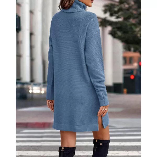 BTFBM Women's Turtleneck Long Sleeve Sweater Dress Side Slit Hem Fall Winter Oversized Casual Knit Pullover Sweaters Tops(Solid Light Grey Blue)