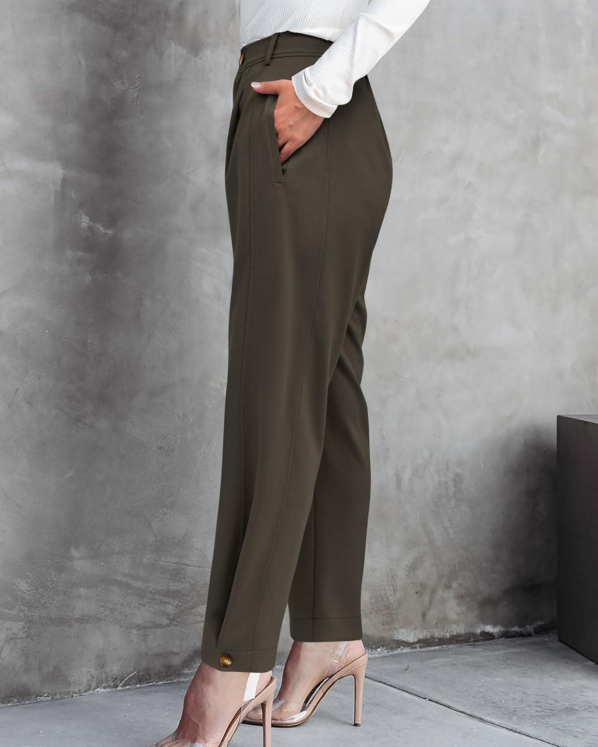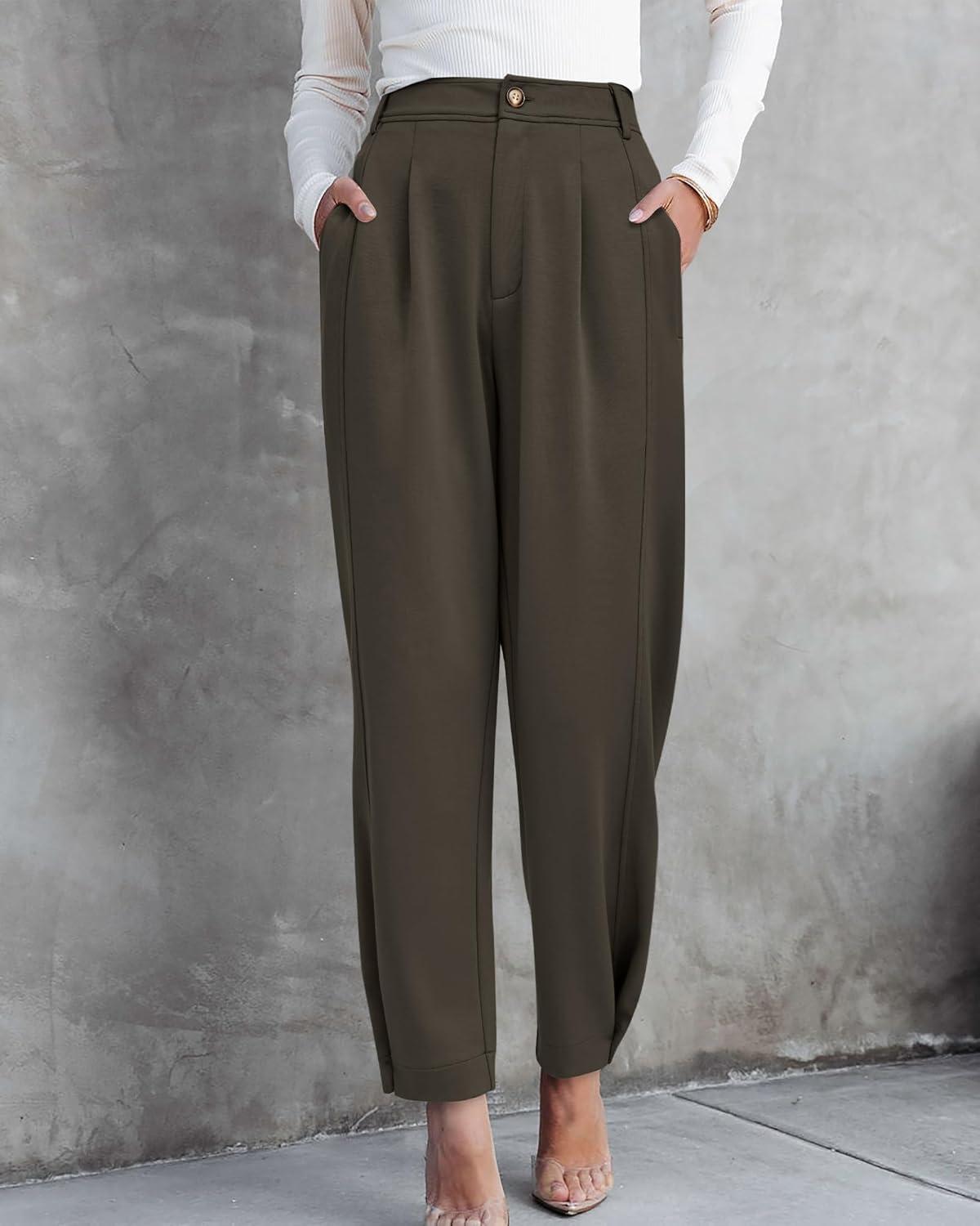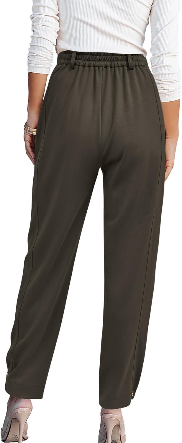 BTFBM Work Pants Women Business Casual Outfits Fall 2025 Elastic High Waist Dress Trousers Pockets Long Tapered Slacks(Army Green)