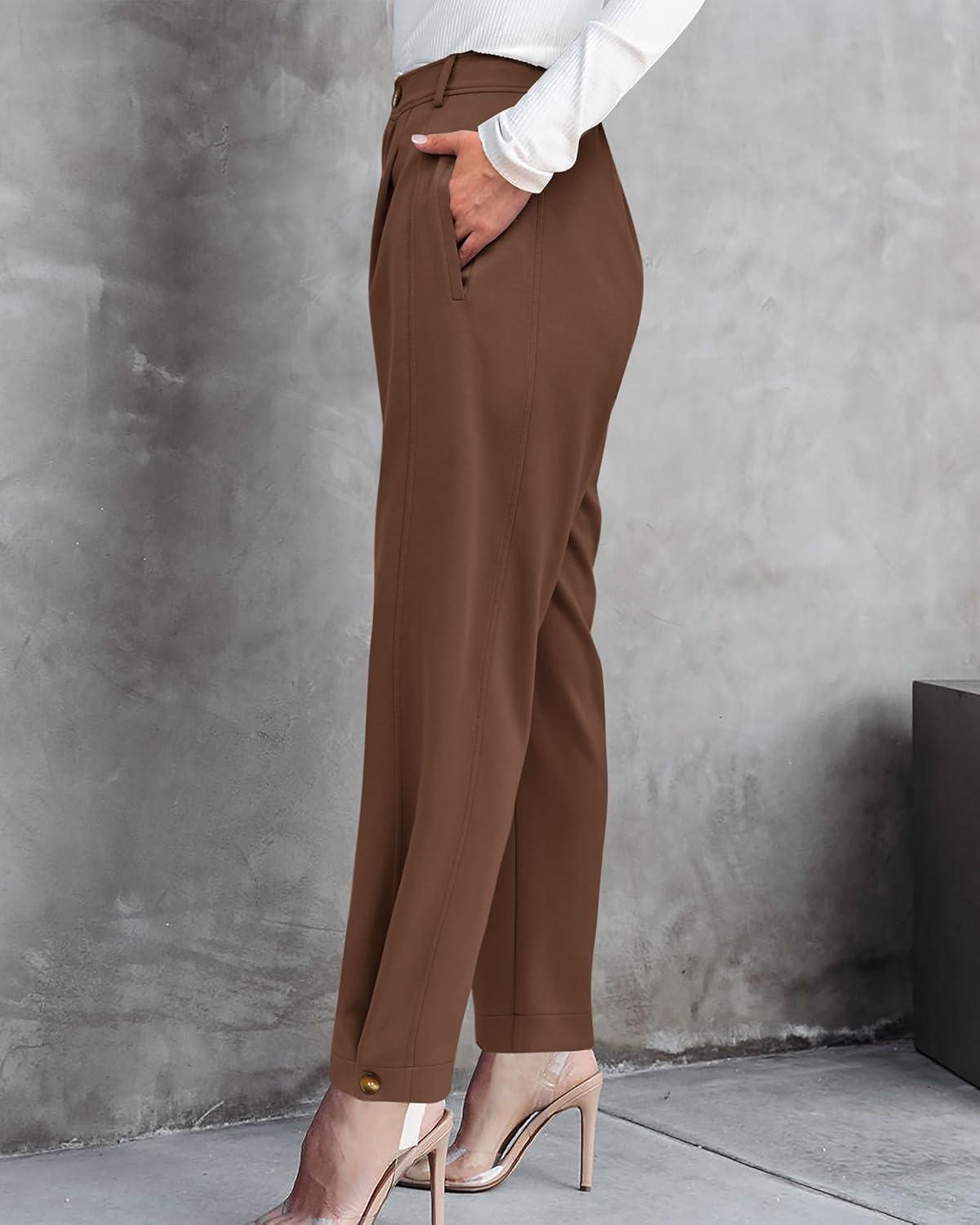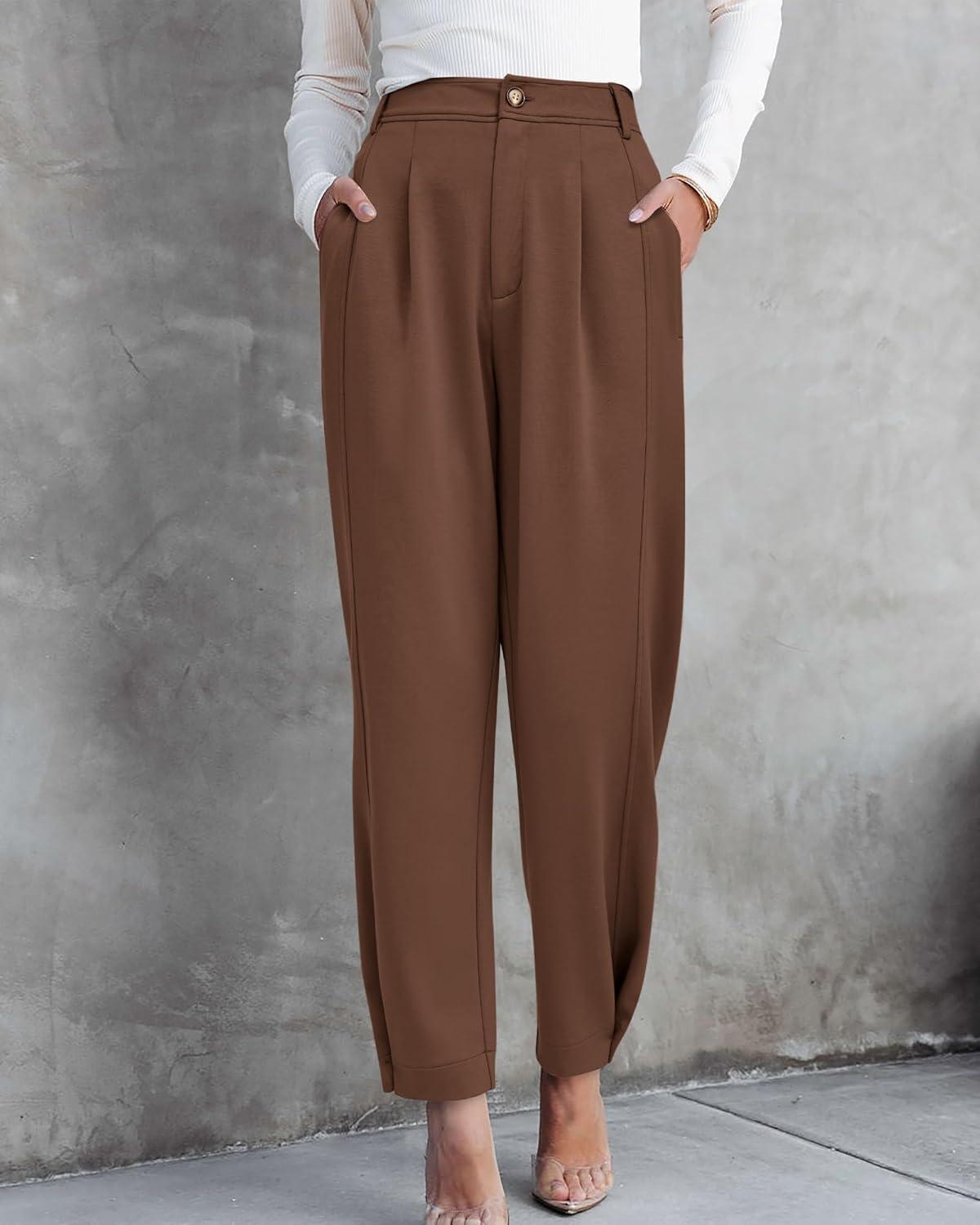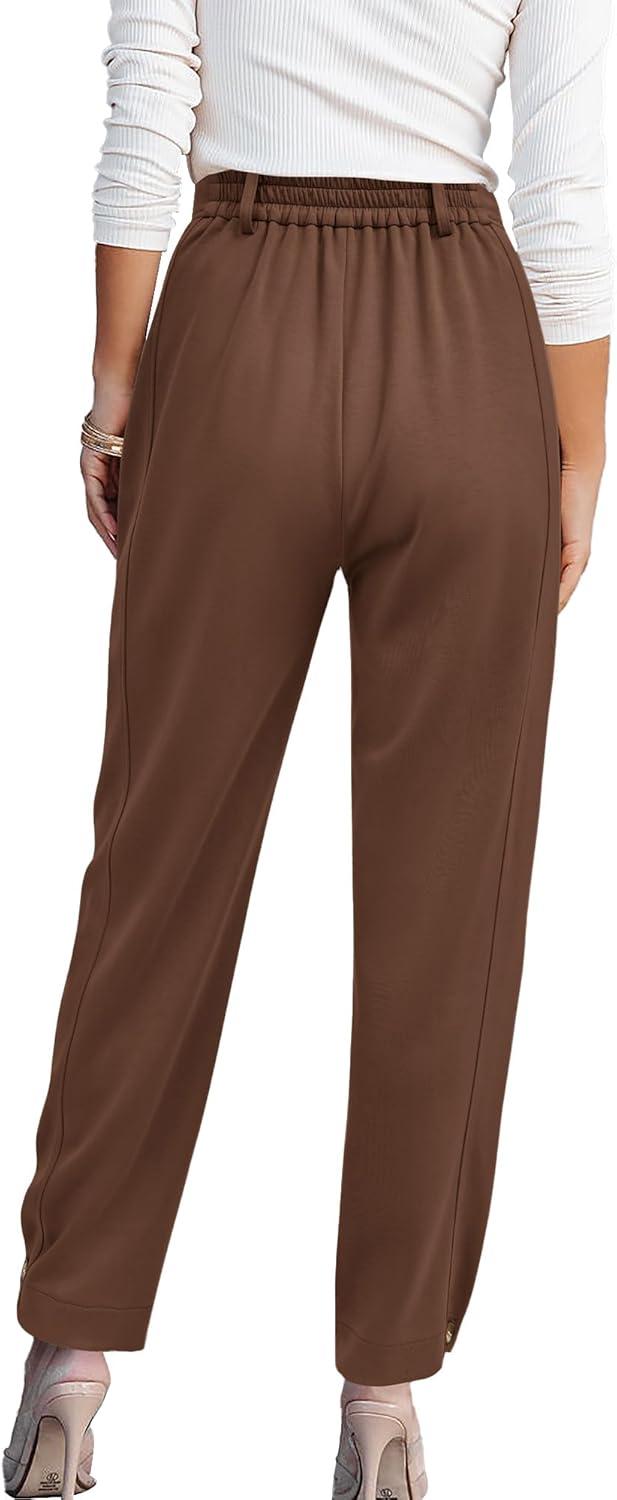 BTFBM Work Pants Women Business Casual Outfits Fall 2025 Elastic High Waist Dress Trousers Pockets Long Tapered Slacks(Brown)